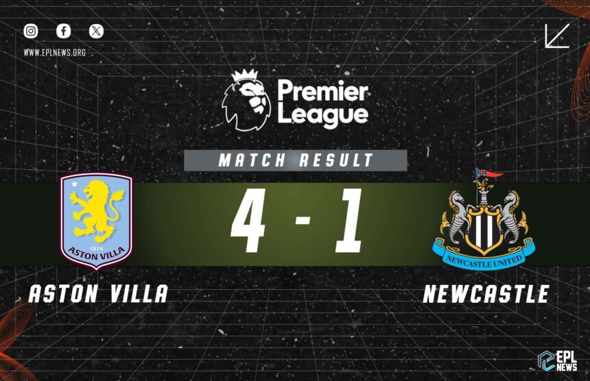 Aston Villa Prodloužili svůj nepřekonaný běh Premier League ve Villa Park na 16 zápasů s důrazným vítězstvím 4-1 nad Newcastle United a příští sezónu vládl jejich tlak na místo Ligy mistrů UEFA.