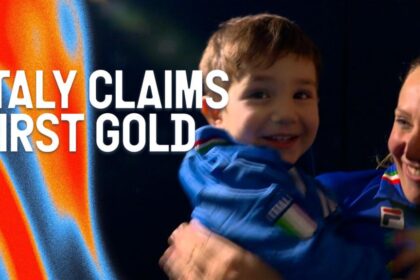 Rychlobruslařův syn se připojuje k oslavám prvního italského zlata. Video, 00:02:04Syn rychlobruslaře…